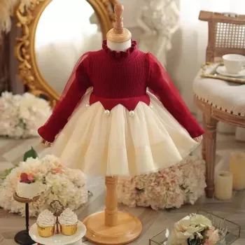 Girls Knee-Length A-Line Dress with Beading for 2-7 Years Old
